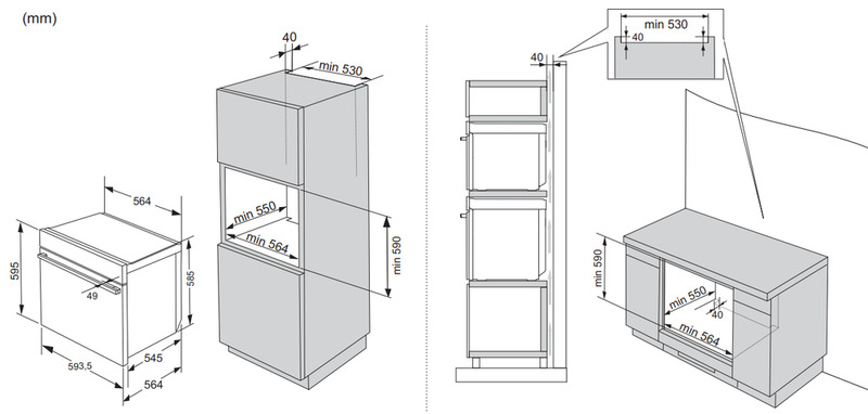 Габариты ниши для встраивания: 59x56.4x55 см