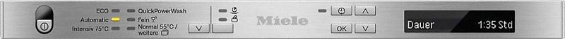 Модель имеет дополнительную третью полку-телескоп для столовых приборов ExtraComfort, загрузка возросла до 9 комплектов посуды. Лицевая часть выполнена из нержавеющей стали с покрытием CleanSteel. Сенсорное управление Touchcontrol облегчает выбор программ в посудомоечной машине – достаточно легкого прикосновения к сенсорным кнопкам. Модель Miele G 5790 SCVi SL имеет 1-строчный текстовый дисплей в том числе и на русском языке, отображающий информацию о выбранной программе, времени до ее окончания и т.д. Машинка имеет систему защиты от утечки воды из машины и заливного шланга Waterproof. В случаи утечки система автоматически отключит подачу воды. Это избавит Вас от дополнительных хлопот.