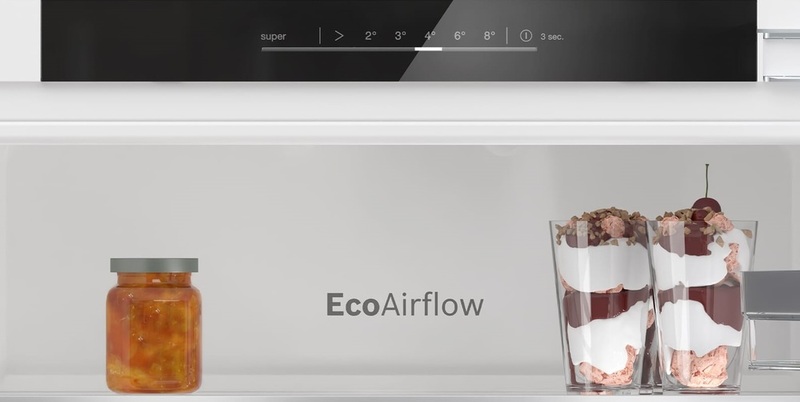 Встраиваемый холодильник Bosch KIN86VFE0 - вместительный холодильник с нижней морозильной камерой, не требующий ручной разморозки. Холодильник оборудован технологией FreshSense - специальные датчики определяют температуру и поддерживают её на постоянном уровне. Создание равномерного и постоянного охлаждения позволяет длительное время сохранять свежесть продуктов. Обе камеры модели адаптированы для сохранения микроклимата при размещении большого объёма свежих продуктов, которые могут повысить температуру. Этому способствуют функции "Суперохлаждения" и "Суперзамораживания". Загруженные продукты быстро охлаждаются, а общая температура остаётся на оптимальном уровне. Управлять холодильником очень просто. Пользователь с лёгкостью установит нужную температуру в камерах, а также активирует дополнительные функции. Цифровой дисплей демонстрирует действительную температуру в холодильном и морозильном отсеке.