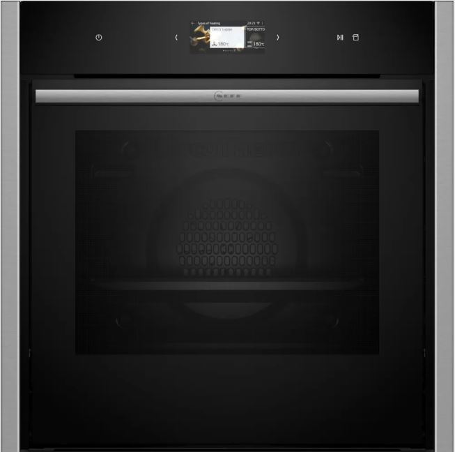 Духовой шкаф B24FS33N0 — это инновационные технологии и элегантное исполнение в сочетании нержавеющей стали со стеклом. Полноразмерная модель объемом 71 литр предназначается для встраивания в колонну вместе с другой домашней техникой — такой, как кофемашины или микроволновки. Электронная система управления оснащена большим цветным дисплеем и фирменным переключателем режимов работы Neff Navigator. Меню подсказок BAKE AND ROAST ASSIST позволяет воспользоваться кулинарной книгой с 38 рецептами приготовления различных блюд. Самоочищающееся каталитическое покрытие задней стенки максимально упрощает уход за духовкой.