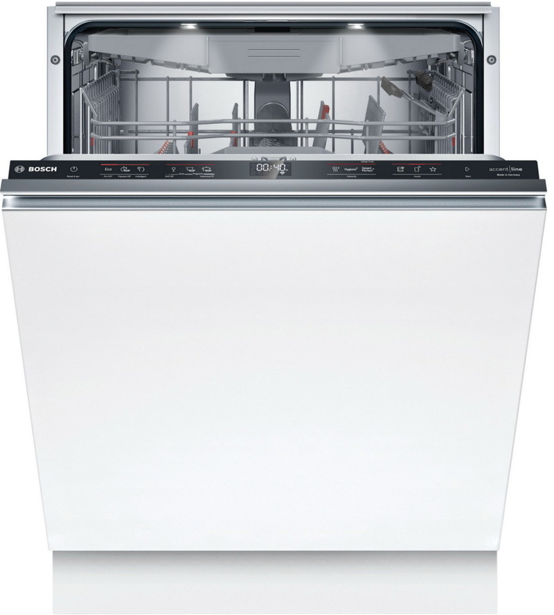 Во встраиваемой посудомоечной машине Bosch SMD6ZC804E реализована защита от протечки, что предотвращает затопление помещения. Если нужно сократить время цикла, воспользуйтесь опцией VarioSpeedPlus, ускоряющей процесс на 50–60%. Это отличное решение для устранения легких загрязнений. Не бойтесь за хрупкую посуду — продуманный теплообмен и регулирование жесткости воды предотвращают агрессивное воздействие моющих средств и температурные перепады. Для кастрюль и сковород предусмотрена отдельная корзина с зоной интенсивной мойки. Вы можете распределять пространство рабочей камеры с помощью VarioFlex — это система складных элементов, которую можно задействовать в тех случаях, когда посуды действительно много.