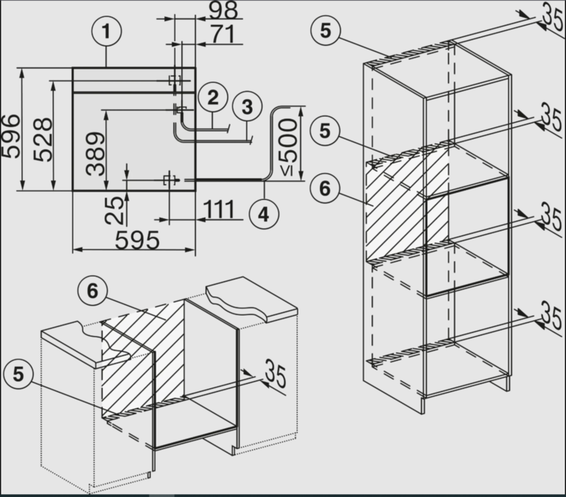 Габариты ниши для встраивания: 58.5-59.5х56-56.8х55 см