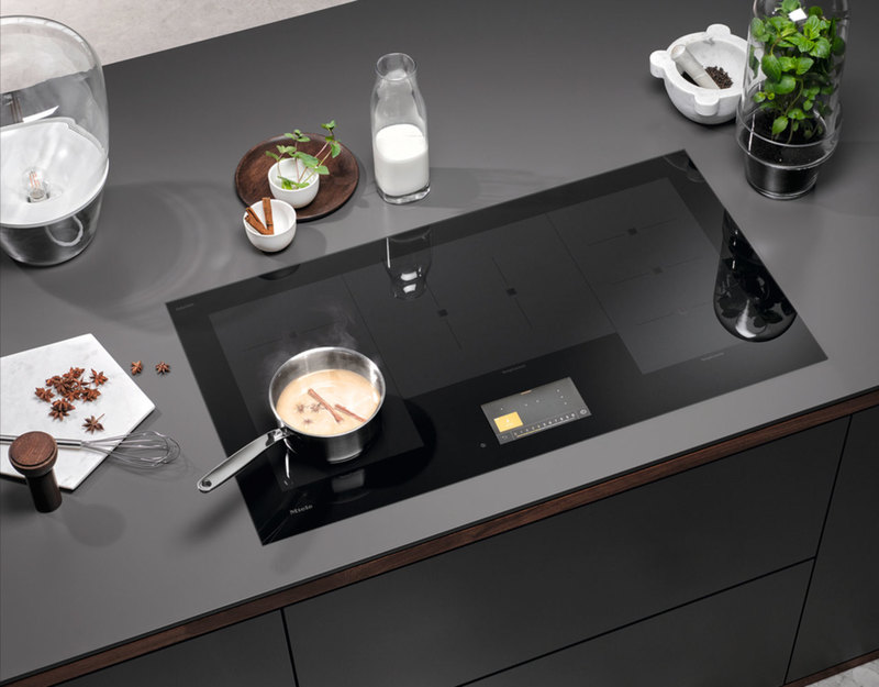 Индукционная панель Miele KM 7999 FL сочетает стильный дизайн и функции высокой эффективности. Она оснащена 5 зонами нагрева, функцией PowerFlex для объединения зон, интуитивным сенсорным TFT-дисплеем и функцией Stop&Go для удобства. Эта модель обеспечивает точный контроль температуры и безопасность в использовании, благодаря 8 датчикам TempControl. Автоматическая функция закипания дополнительно ускоряет процесс: при её активации конфорка разогревается до максимума, доводя воду до 100 градусов, прежде чем переключается на установленный уровень.