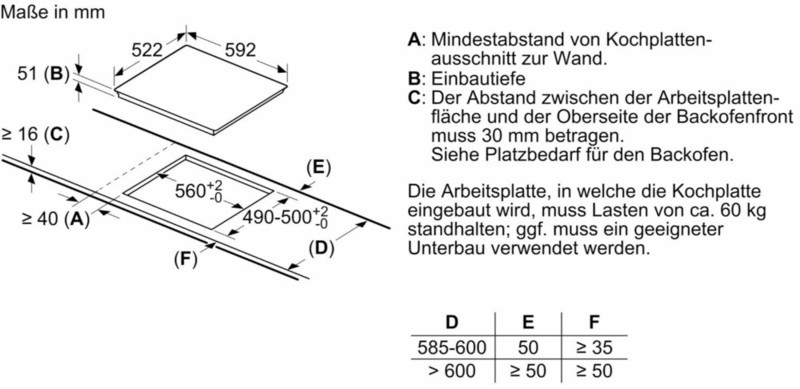 Минимальная толщина встраивания в столешницу 30 мм