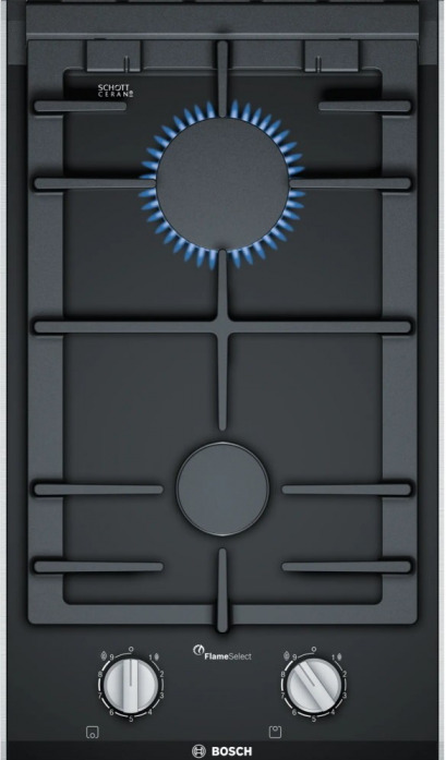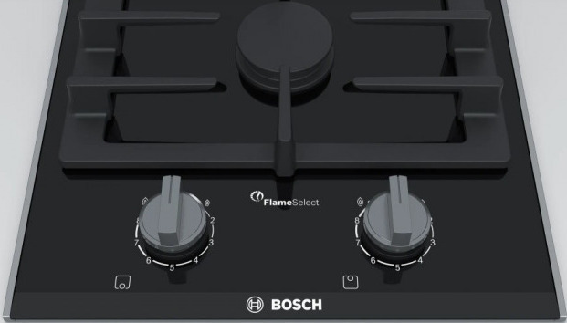 Варочная панель Bosch PRB3A6B70 сконструирована в элегантном стиле Domino. Поверхность из стеклокерамики представлена в черном цвете. Модель оснащена двумя конфорками: повышенной мощности 2800 Вт и стандартная 1900 Вт, которые способствуют быстрому приготовлению пищи. Функция FlameSelect позволяет регулировать пламя на девяти разных уровнях. Механизм разжигается одним поворотом благодаря технологии автоматического электроподжига. В случае затухания пламени функция «Газ-контроль» перекрывает подачу газа, что повышает уровень безопасности эксплуатации. Удлиненные чугунные решетки служат для максимальной устойчивости и комфорта использования.