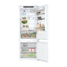 Встраиваемый холодильник Bosch KBN96ADD0 - вместительный холодильник с нижней морозильной камерой, не требующий ручной разморозки. Холодильник оборудован технологией FreshSense - специальные датчики определяют температуру и поддерживают её на постоянном уровне. Создание равномерного и постоянного охлаждения позволяет длительное время сохранять свежесть продуктов. Обе камеры модели адаптированы для сохранения микроклимата при размещении большого объёма свежих продуктов, которые могут повысить температуру. Этому способствуют функции "Суперохлаждения" и "Суперзамораживания". Загруженные продукты быстро охлаждаются, а общая температура остаётся на оптимальном уровне. Управлять холодильником очень просто.