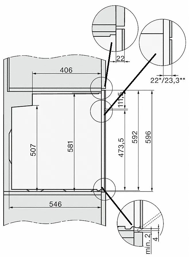 Габариты ниши для встраивания: 58.5-59.5х56-56.8х55 см