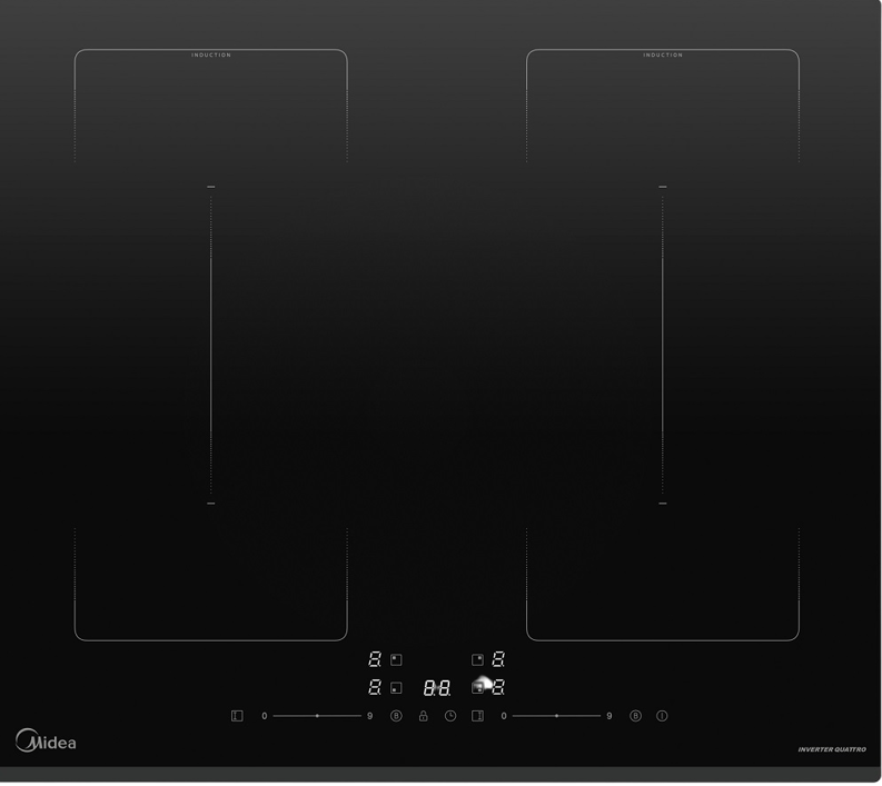 Варочная панель работает на индукционном нагреве — это значит, что повышается температура непосредственно посуды, в которой готовится блюдо. Таким образом промежуточная ступень с предварительным нагревом конфорки пропускается — сокращается время, повышается безопасность.