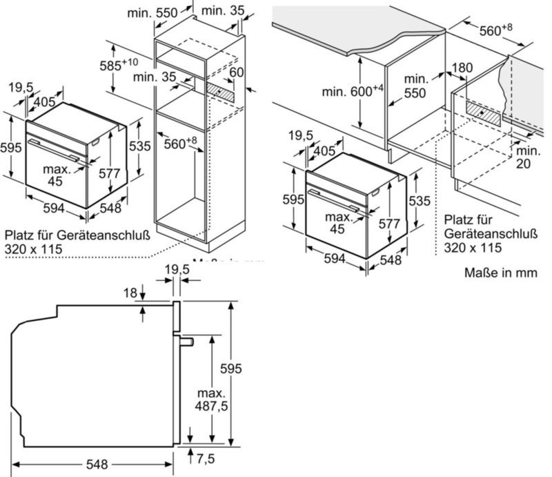 Габариты ниши для встраивания: 58.5-59.5х56-56.8х55 см