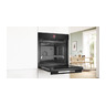 Bosch HBG934BB1 в черном исполнении серии , фасад духовки выполнен из ударопрочного стекла,что позволяет безопасно пользоваться духовкой. Благодаря встроенной системе подачи воздуха со всех сторон позволяет получать равномерное распределение температуры на всех уровнях. Тепловые возможности позволяют поднять внутреннюю температуру до 300 градусов, что при необходимости может значительно ускорить процесс приготовления мясных продуктов. Духовой шкаф Bosch HBG633NB1 может работать в 14-ти различных режимах, плюс встроенный электрический гриль, для любителей барбекю и фритюра. Галогенное освещение духовки дает дополнительную возможность контролировать процесс работы.