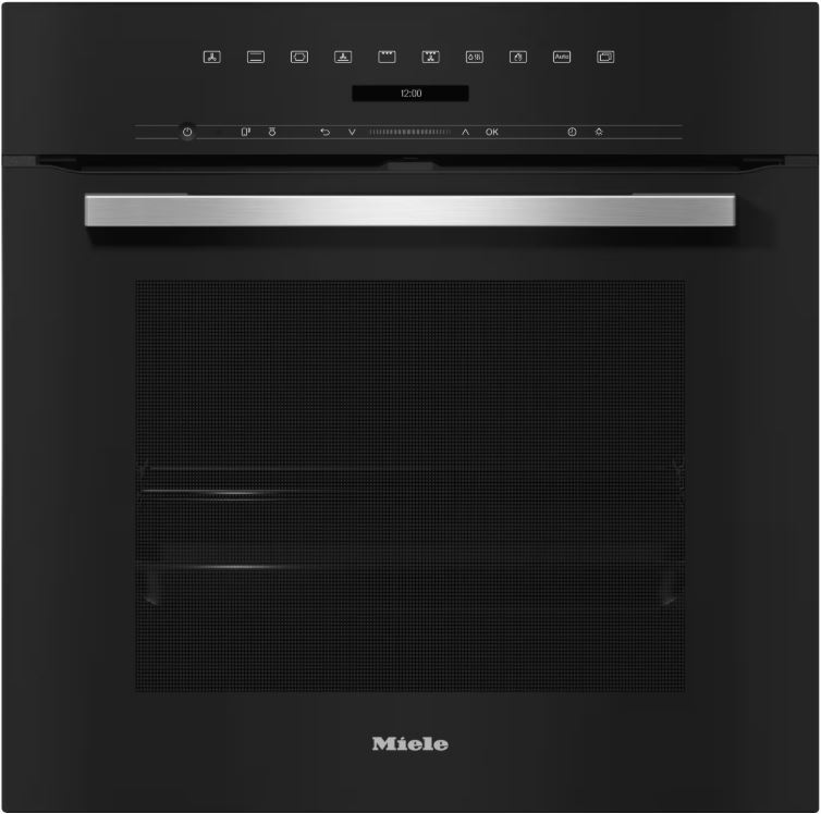 Электрический духовой шкаф Miele H7165 BP OBSW в черном исполнении, стеклянный фасад легко очищается от загрязнений, панель управления располагает сенсорными переключателями и цифровым дисплеем. Серебристая фурнитура органично сочетается с общим образом модели. Специальный амортизатор обеспечивает плавное и бесшумное закрытие дверцы, тем самым повышая срок эксплуатации прибора.