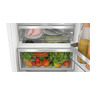 Встраиваемый холодильник Bosch KIN96VFD0 с нижней морозильной камерой имеет полезный объем 290 л. Модель оборудована светодиодным освещением холодильного отделения. Холодильник характеризуется низким уровнем энергопотребления: он соответствует классу энергоэффективности А+. Холодильник оборудован технологией FreshSense - специальные датчики определяют температуру и поддерживают её на постоянном уровне. Создание равномерного и постоянного охлаждения позволяет длительное время сохранять свежесть продуктов. Обе камеры модели адаптированы для сохранения микроклимата при размещении большого объёма свежих продуктов, которые могут повысить температуру. Этому способствуют функции "Суперохлаждения" и "Суперзамораживания". Загруженные продукты быстро охлаждаются, а общая температура остаётся на оптимальном уровне. Управлять холодильником очень просто. Пользователь с лёгкостью установит нужную температуру в камерах, а также активирует дополнительные функции. Цифровой дисплей демонстрирует действительную температуру в холодильном и морозильном отсеке.