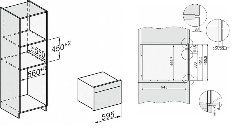 Габариты ниши для встраивания: 56-56.8x45-45.2x55 см