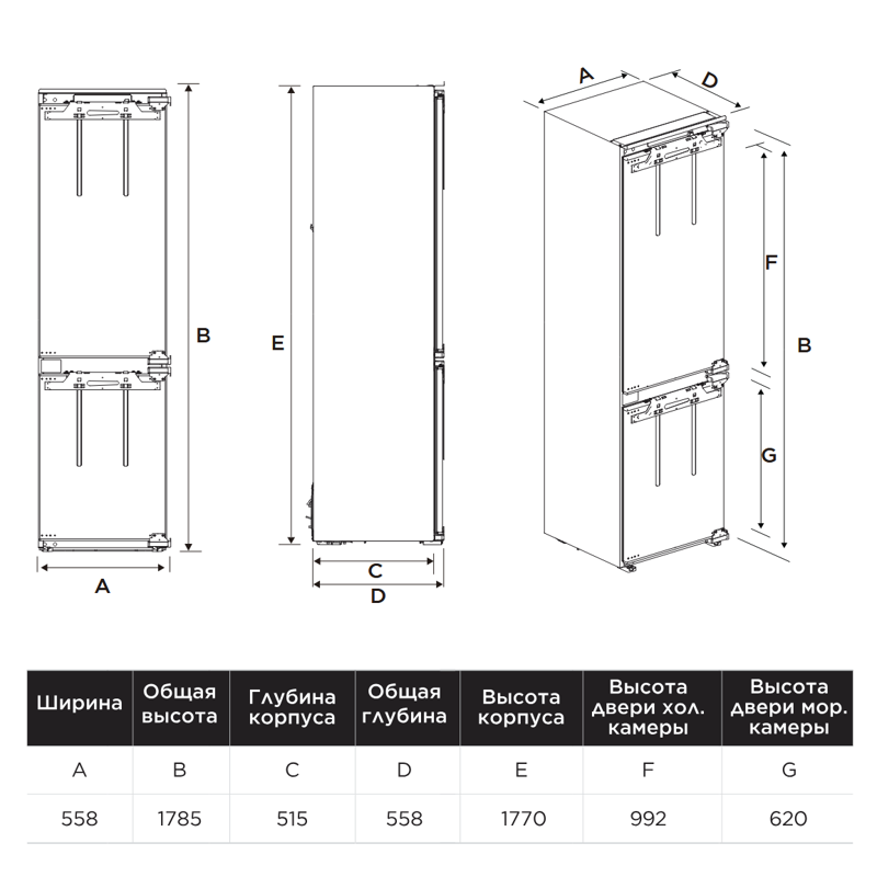 Встраиваемый холодильник Midea MDRE371FGE01