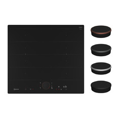 Индукционная варочная панель Neff T66PYY4C0 шириной 60 см выполнена из черной стеклокерамики без рамы и оснащена 4 конфорками. Управляйте варочной панелью одним пальцем: с помощью магнитной съемной панели TwistPad Flex, дизайн которого подбирается индивидуально в зависимости от ваших потребностей. Аксессуар доступен в 4х цветах - Deep Black, Brushed Bronze, Metallic Silver и Anthracite Grey. Активируйте нужную конфорку легким наклонным движением, а затем поверните оригинальную ручку, чтобы установить один из 17 уровней нагрева. Функции PowerBoost на индукционной варочной панели дает Вам на 50% больше мощности. С FlexZone варочная панель сразу распознает размер, форму и положение посуды и автоматически соединяет или разделяет гибкие зоны. Датчик жарения FryingSensor постоянно контролирует вашу сковороду, чтобы обеспечить постоянную температуру и предотвратить пригорание. С панели управления варочной панели можно регулировать работу вытяжки (при наличии данной функции у обоих приборов). Для каждой конфорки осуществляется двухпозиционная индикация остаточного тепла, которая предупредит, что поверхность еще горячая. Блокировка кнопок не позволит случайно выключить прибор или изменить настройки.