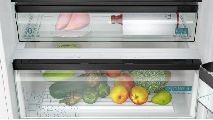Встраиваемый холодильник с нижней морозильной камерой Siemens StudioLine IQ500 идеально подходит для длительного хранения любых продуктов, включая незамороженное мясо, овощи и фрукты. В нём предусмотрена зона свежести НyperFresh и отделение с регулируемой влажностью. Система многопоточной вентиляции Multi-Airflow дополнена угольным фильтром. Она не только равномерно распределяет потоки холодного воздуха во внутреннем пространстве, но и предотвращает развитие бактерий, способствующих порче продуктов. Устройство оснащается современным инверторным компрессором с невысоким уровнем энергопотребления.