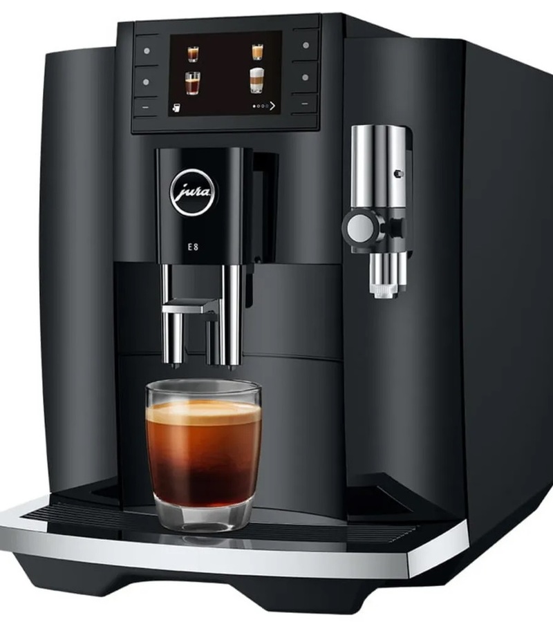 Самое последнее поколение кофемашины E8 во всех отношениях соответствует высоким требованиям и ожиданиям, которые возлагаются на новую версию самой успешной модели автоматической кофемашины компании JURA. Она подкупает отличным качеством кофе и максимально простым принципом управления и привлекает современным лаконичным дизайном. Благодаря самым современным технологиям она предлагает одним нажатием кнопки приготовить 17 классических и оригинальных кофейных напитков в самом высоком качестве, сравнимом с качеством в кофе-барах.